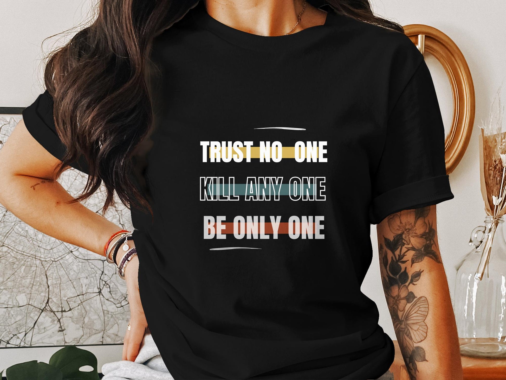 This Billa black t-shirt features a quote, making it a stylish and trendy addition to your wardrobe. Its comfortable fit and high-quality fabric ensure long-lasting wear. Perfect for casual occasions and expressing your unique fashion sense.